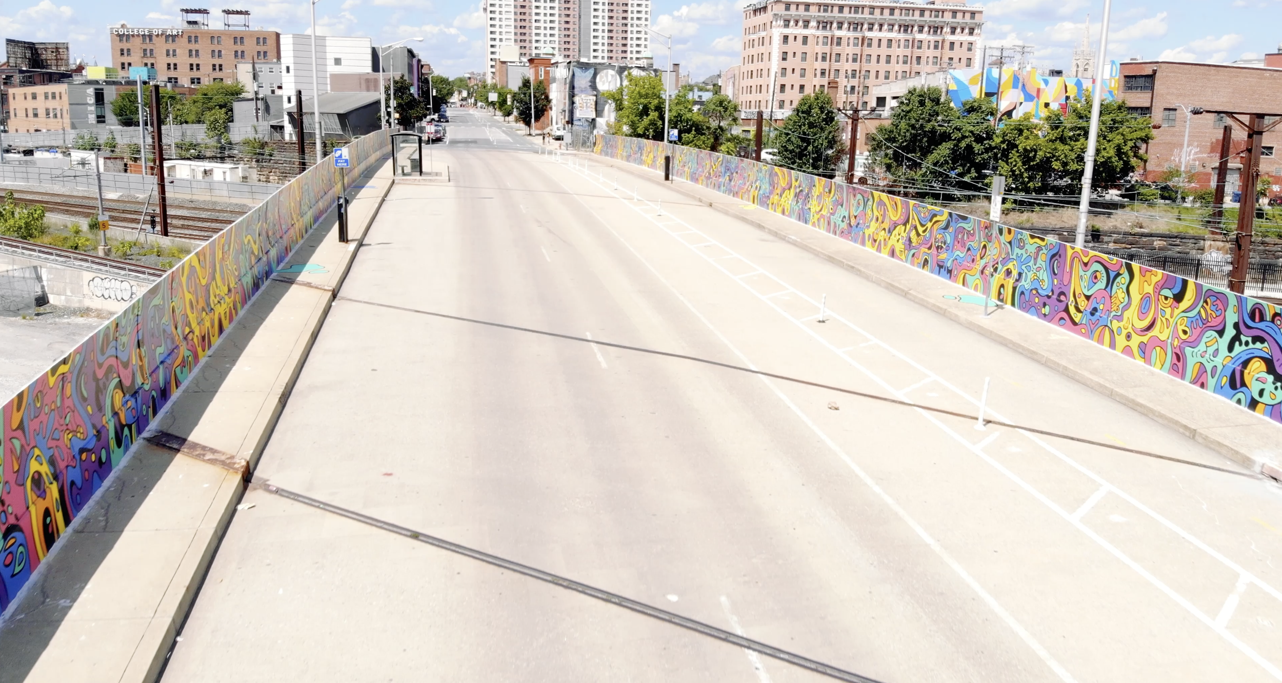 The Maryland Avenue Bridge, spanning around 7,243 SF of surface, was painted in 42 days, over 3 months of grueling heat in Baltimore City. Saba hired & managed a team of 9 professional muralists, and more than a dozen volunteers, to assist in the completion of this monumental project. Special thanks goes to Midtown Baltimore, Bloom Arts Strategy, and Central Baltimore Partnership for their tremendous support in bringing this project to life. This project is part of the Falls Gateway Masterplan.