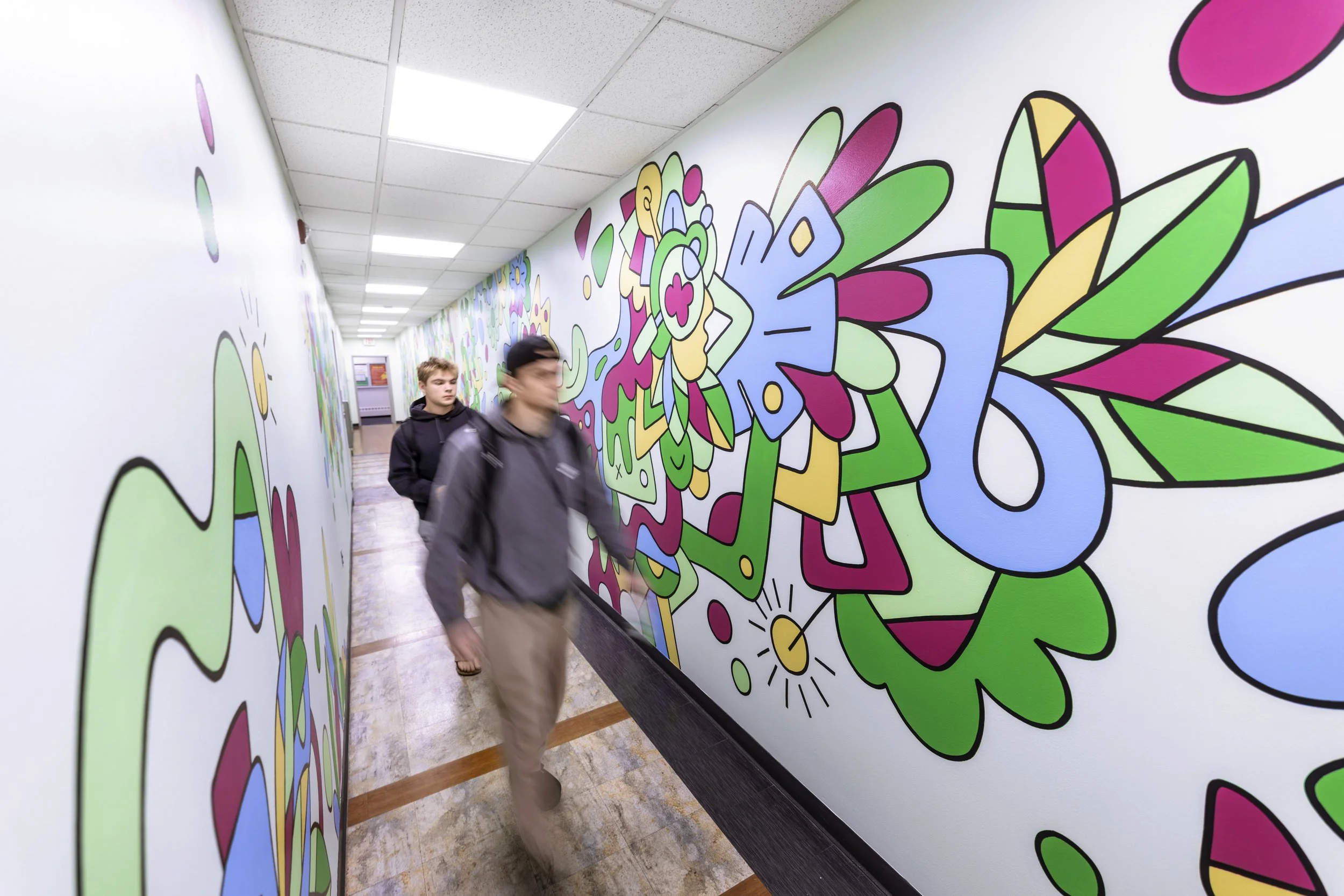 Student-inspired design for Rouzer Hall’s 90 foot long hallway at McDaniel College in Westminster, MD.
